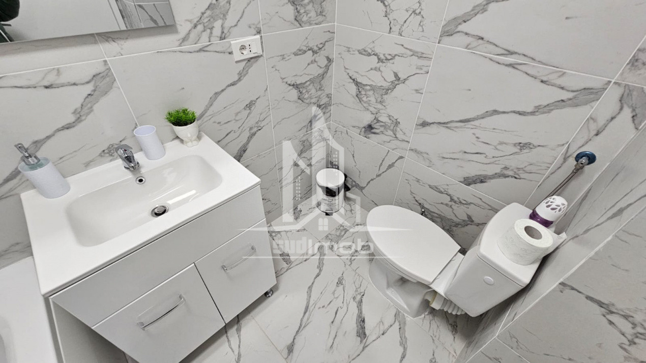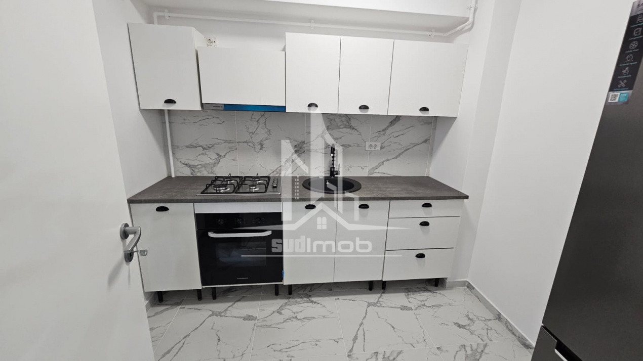 Garsoniera este finisata complet, dispune de plita, cuptor, hota, frigider, bucatarie mobilata, living mobilat, televizor LCD, baie echipata.