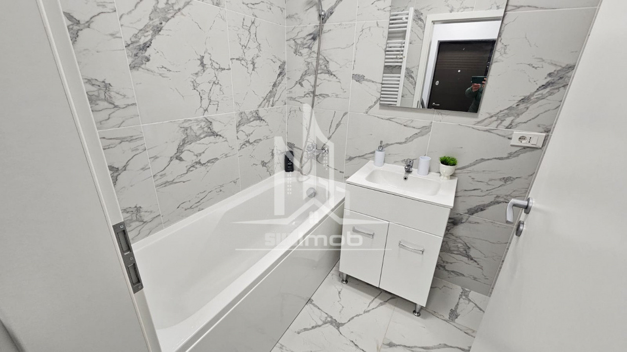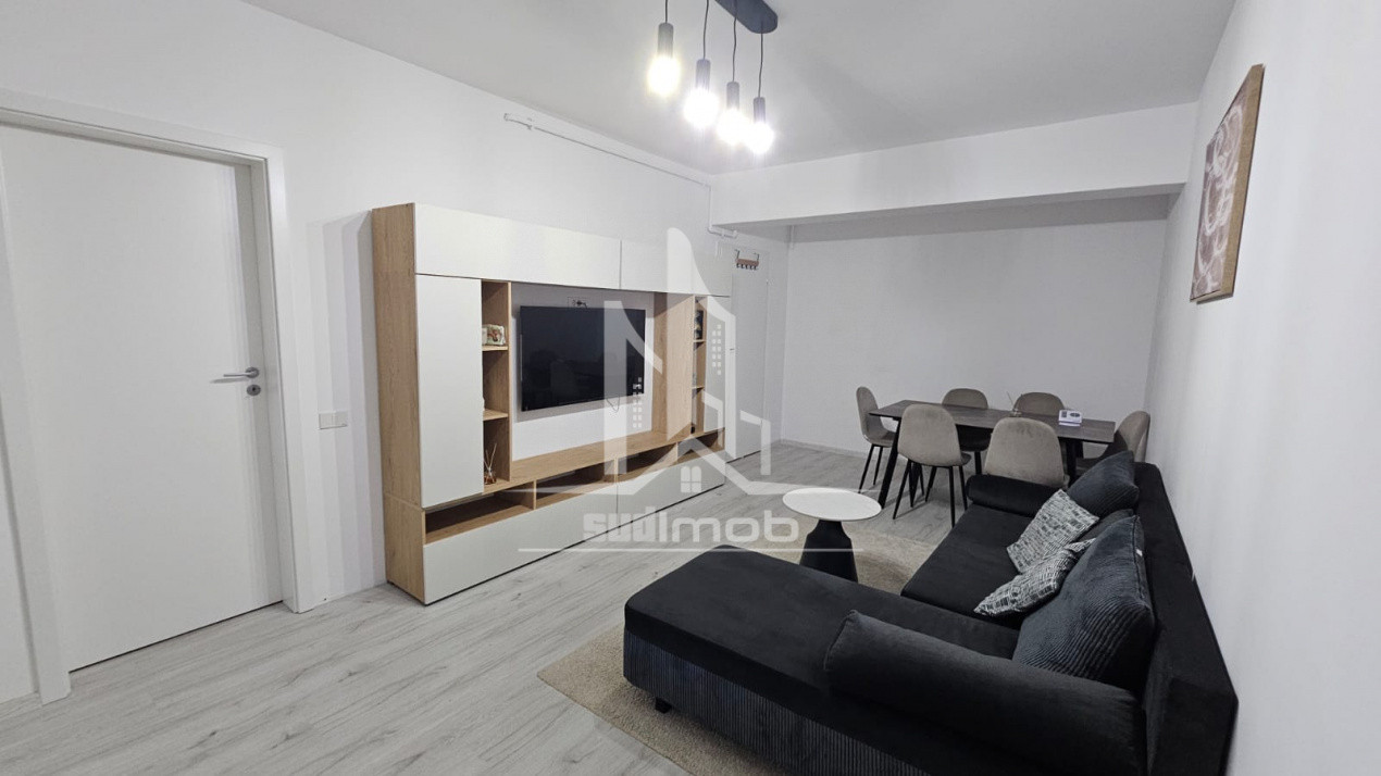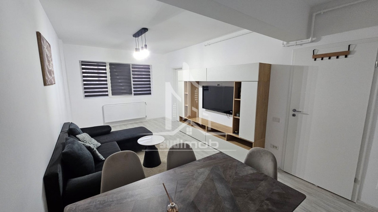 Garsoniera este finisata complet, dispune de plita, cuptor, hota, frigider, bucatarie mobilata, living mobilat, televizor LCD, baie echipata.