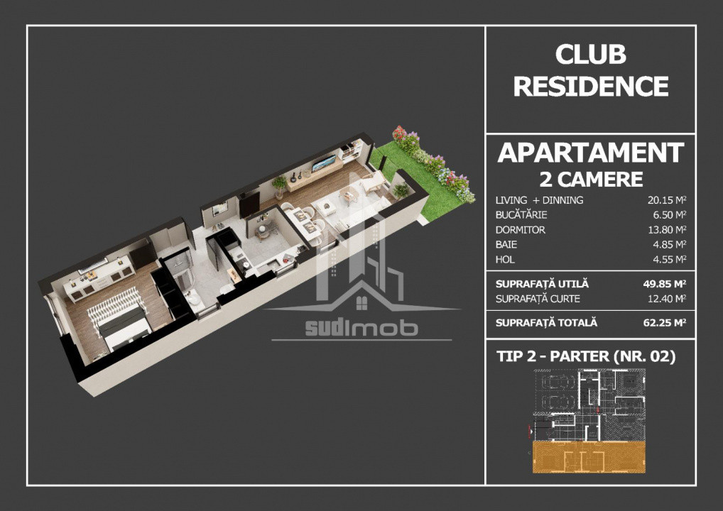 Termen de finalizare constructie februarie 2026, mutare si acte aprilie 2026.