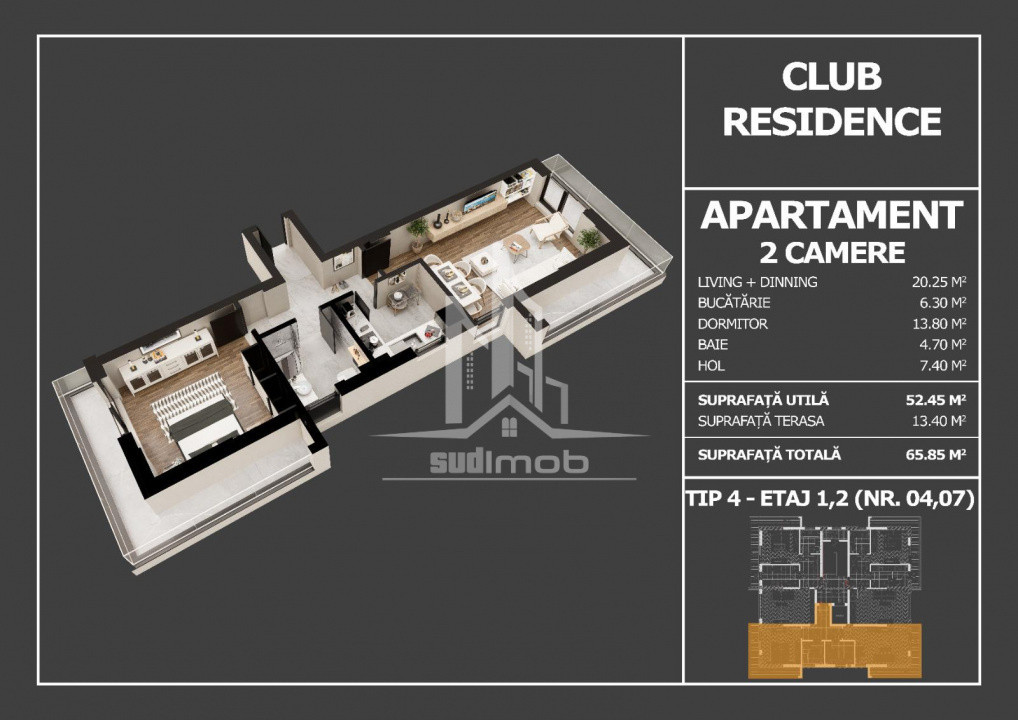 Termen de finalizare constructie februarie 2026, mutare si acte aprilie 2026.