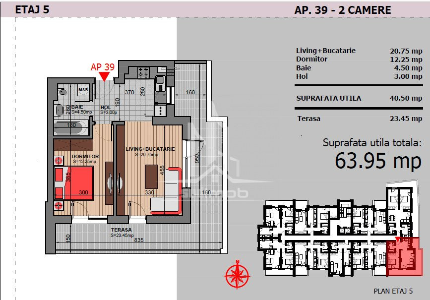 Va propun spre achizitie un apartament de 2 camere tip studio si terasa de 23 mp intr-un ansamblu nou de 7 niveluri cu 2lifturi.