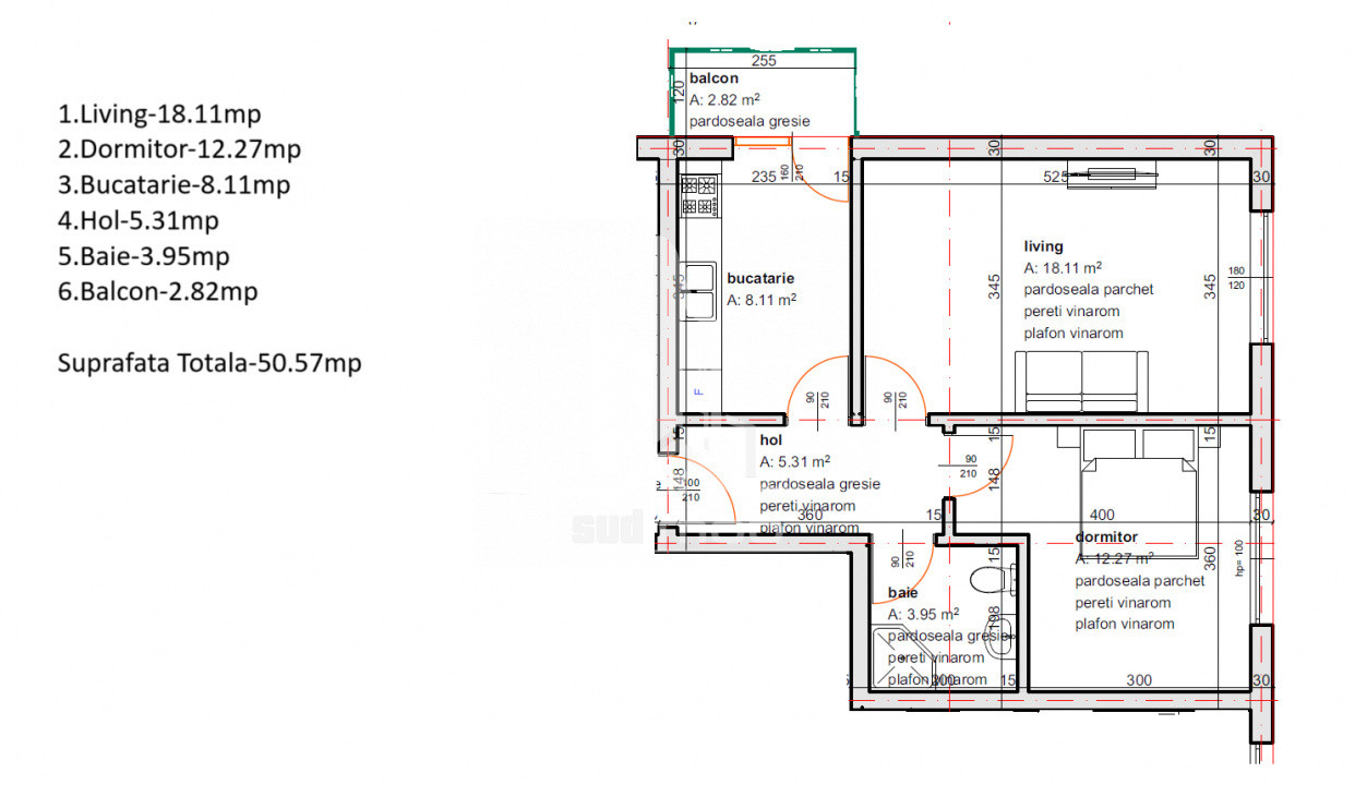 Apartamentul se finiseaza premium, obiecte sanitare incastrate, tamplarie pvc cu geam tripan. Tavanele sunt tip barrisol,baia are geam.