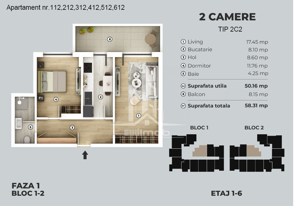 Apartamentul dispune de incalzire in pardoseala, tamplarie PVC cu geam termopan si se va preda la cheie cu finisaje alese de dumneavoastra.