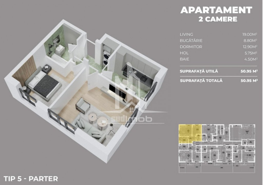 Agentia SUDIMOB va propune spre achizitie un apartament de 2 camere decomandat, fara balcon intr-un ansamblu rezidential nou de 4 niveluri cu lift situat pe Drumul Fermei langa parcul Laurentiu Raiciu. Apartamentul dispune de incalzire in pardoseala, tamplarie PVC cu geam termopan si va fi predat la cheie cu finisaje alese de dumneavoastra.