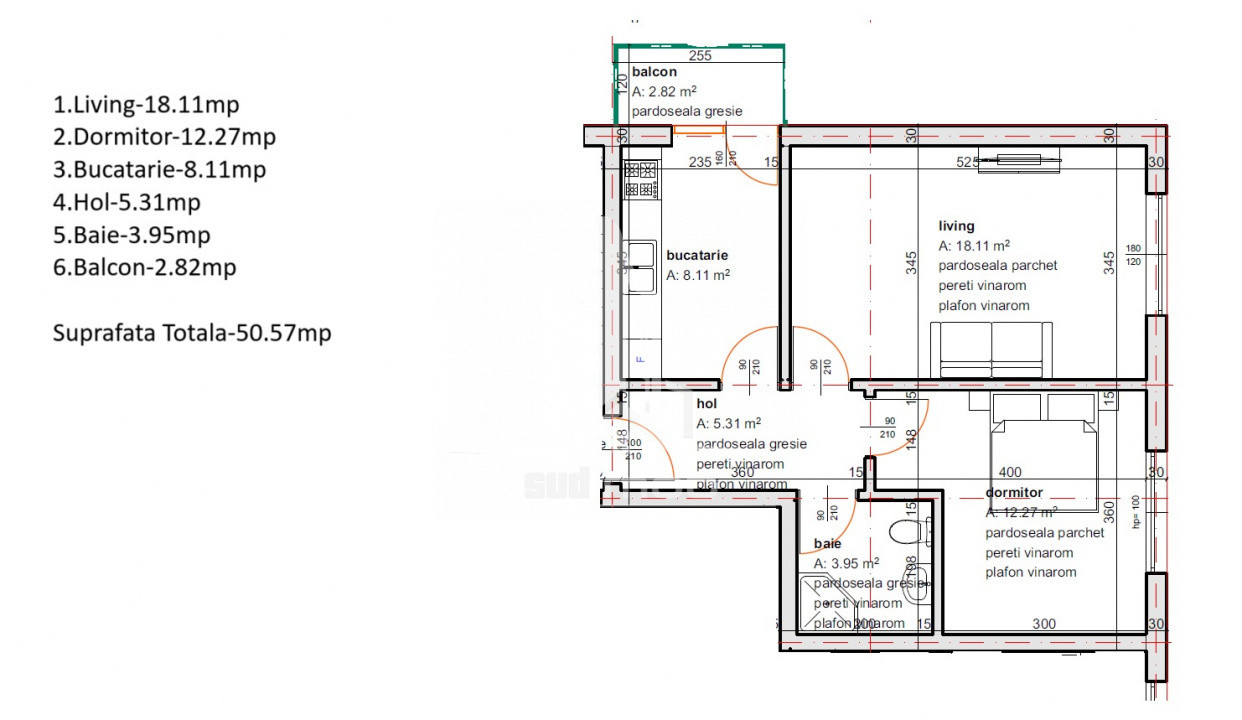 Apartamentul se va preda la cheie cu finisaje alese de dumneavoastra. Tamplarie PVC cu geam tripan.