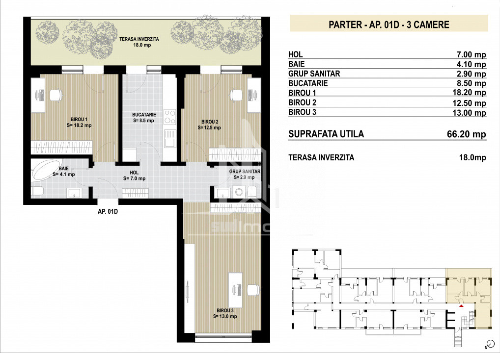 -suprafața utila-84.2 mp dintre care 18m reprezinta terasa