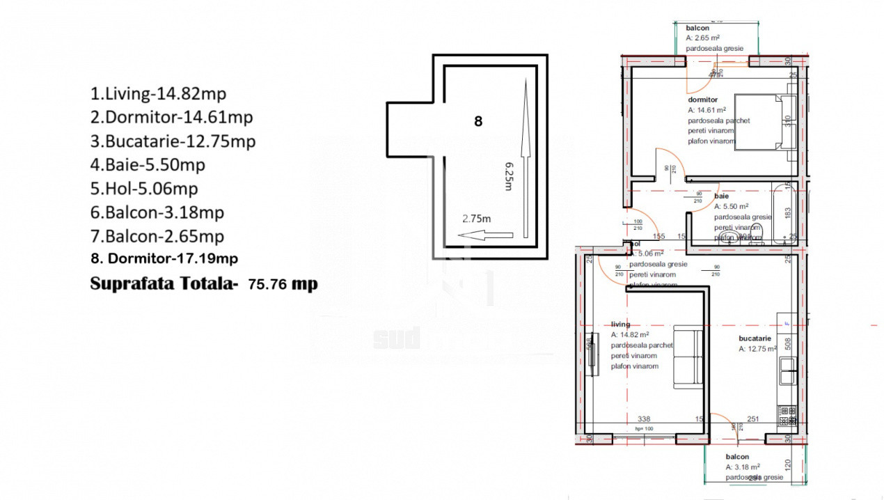 Agentia SUDIMOB va propune spre achizitie un apartament de 3 camere duplex cu 1 baie si 2 balcoane intr-un bloc mic de 3 niveluri tip boutique fara lift situat pe soseaua Leordeni.