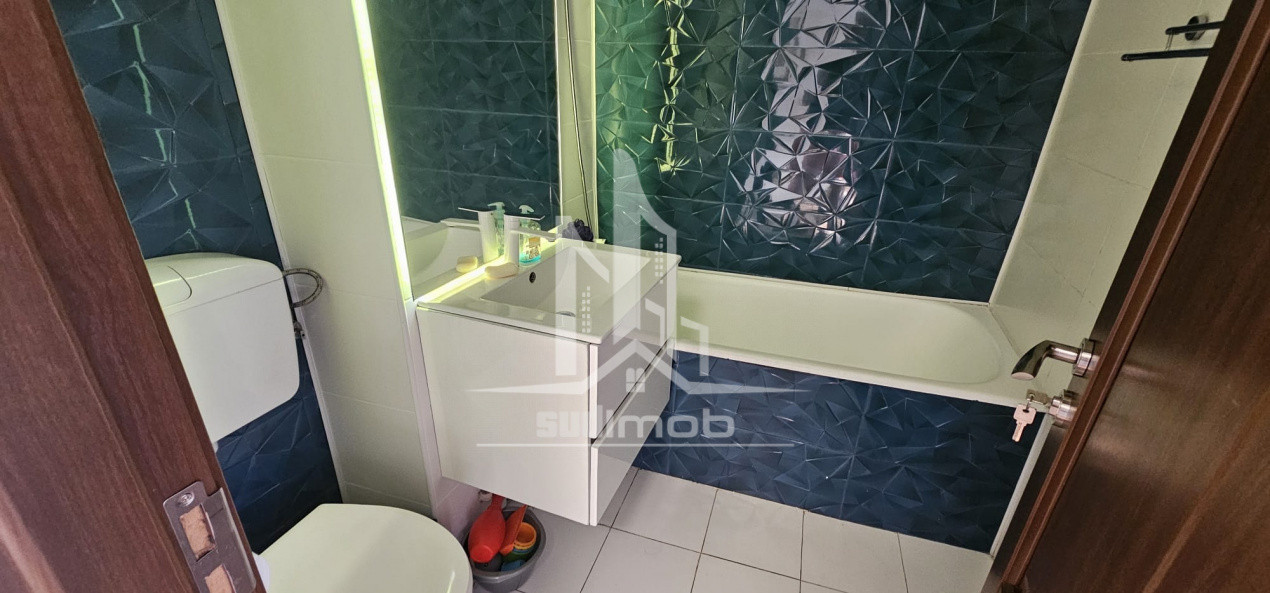 Apartamentul a fost renovat integral in anul 2022 si dispune de toate imbunatatirile - tamplarie PVC cu geam termopan. usa metalica, gresie, faianta, parchet, usi interior celulare, obiecte sanitare noi, aer conditionat. Aparatamentul dispune de 2 bai, un balcon generos de 6 mp si se vinde cu buctaria mobilata si un dormitor complet.