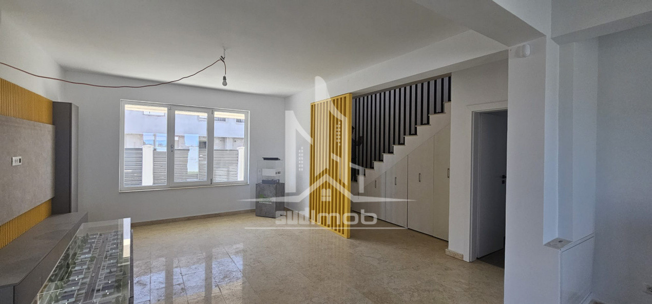 Pe parter avem living cu bucatarie open space, baie cu cabina de dus si geam si acces catre curte. Curte libera 200 mp ce se va preda amenajata cu gazon.