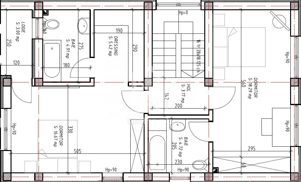 Deasupra etajului 1 avem placa de beton turnata si acces catre pod.