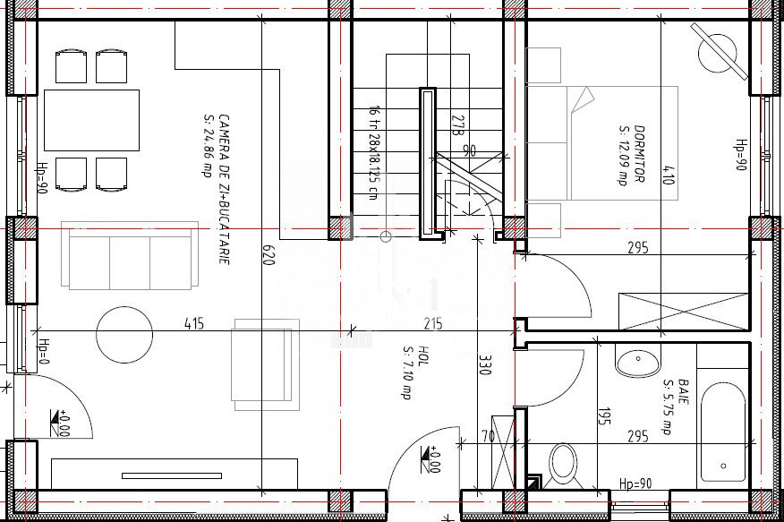 Deasupra etajului 1 avem placa de beton turnata si acces catre pod.