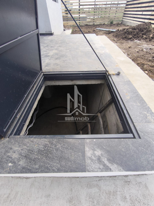 -living, dormitor, bucatarie inchisa, baie, hol, terasa exterioara, beci pe toata suprafata terasei.
