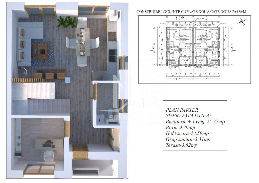 • Spatii utile: Spatiu depozitare, Dressing, WC Serviciu